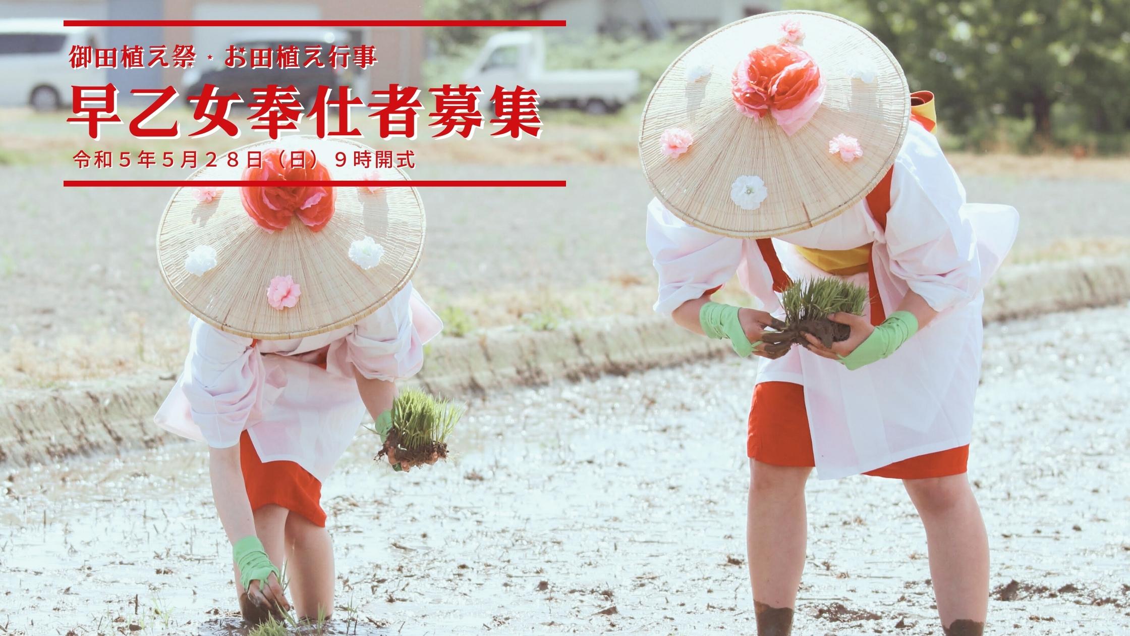 - 早乙女を希望される方は、神社までお申込みください。